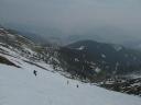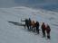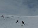 vzponu vseeno potrebno čez kar nekaj kopnih odstavkov. Po dobri smučini smo bili kaj hitro na vrhu, kjer zaradi mrzlega vetrca ni bilo prilike za