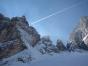 derezami.Strmina v žlebu je res huda,sneg se predira,ledeno je samo pod slapičem vode.Razgled z vrha škrbine na drugo stran je božanski.