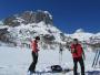 snegu, ostali del pa prek že osončenih pobočij po rahlo odjenjanem srenu. Z Velega polja smo sledili dobri smučini vse do Hribaric in do vzhodnega
