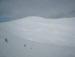 oblačnost z difuzno svetlobo in nekaj vetra na vrhu, z vrha navzdol pa smo že smučali v jasnem in toplem vremenu. Do gozdne meje (gor grede in dol