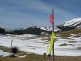 vzhodnik je izgubil bitko z soncem,zato uživam in se počasi pripravim na smuko.Odločim se da smučam po "varnem "robu opasti,tik ob skoraj kopnem