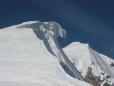 zdrčavajo in potrebno je pručko spustiti na nulo,da srenači vsaj malo zagrabijo.Zaradi varnosti vzamem v roko cepin.Na grebenu me preseneti še tretja