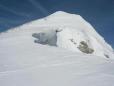 veliko.Zadnjih sto metrov pod sedlom med obema vrhovoma se razmere v trenutku spremenijo iz pomrznjenga v zelo zbito kložo,ki je zoprna,ker psi