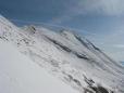 grebenu,ker se po požledu ne da voziti saj je vmes precej trav in kamenja.Na sedlu cepin pospravim in po začetni trdi kloži,ki odlično drži,še bolje