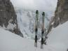 100-200 metrov seveda naredim brez smuči. Na južni strani Škrbini je megla, zato tukaj zaključim vzpon. Sledi malo počitka, potem pa je na vrsti