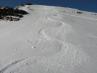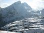 globoko. Tako z dvema rahlima spustoma in preko strme "grape", ki jo seveda prehodim brez smuči pridem na vrh Velikega snežnega vrha. Razgled več kot