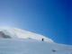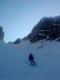 vrha na severovzhod že preizkušena in smo se zato kar držali našega načrta. Čisto zgoraj je bilo še nekaj suhega snega na trdi podlagi, ko smo