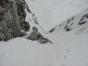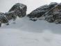 težavnejši, saj je sneg kljub temu, da sonca skoraj ni bilo, že lepo popustil. S škrbine odsmučam-nekaj tudi oddrsam grapo, zatem pa sledi uživaško
