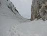pomrznjen. Povlečem špuro v prečnico za klasično smer za sella Ursic, vendar ne grem po dolini gor, ampak po desnih pobočjih, ki so povsem