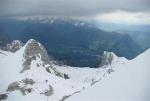 Smučišče od Neveje do Gilbertija je uradno zaprto,vendar ga lepo vzdržujejo in zato gre na smučeh že od dna.Z Ireno se odločiva za Kanin in po smučišču lepo napredujeva do Prevale,kjer se srečamo z Igorjem.Višje se kljub občasni megli odpre pogled na Prestreljenik,ki je lepo zasnežen.Na sedlu se Irena odloči za Kanin,jaz pa smuči na nahrbtnik in po lepih stopinjah na vrh.Sneg ni popolnoma nič odjenjal,zato je bila pri smučanju potrebna previdnost.Nato sem se spustil do kolegice,nakar sva se vrnila nazaj na sedlo.Smučanje izven smučišča je bilo zaradi starih sledi in trde podlage kar naporno in zato je bilo boljše kar po smučišču,kjer se je sneg spodaj že prijetno ojužil.Za praznike bo še sigurno prevozno do dna,ker imajo na velikonočni ponedeljek svojo tradicionalno turnosmučarsko tekmo. LP Franci