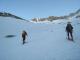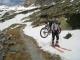 fajn zmehčano od sonca, pod žlebom in vse do koče, pa super puter. Snega je malo. Do koče Gießener smo prišli v petek popoldan z bicikli, saj je