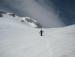 peš. Na prevalu nas je pričakal hladen veter. Kože na smuči, smuči na noge in ...dolgo prečenje, potem pa malo gor, pa dol, pa smo se znašli pod