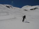 potem pa lepo smučljiv gnojček. Še najhujši je bil vzpon v hudi vročini od vznožja ture, ki je kakih 100 višinskih m pod prelazom na italijanski