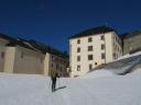 Bourg St. Bernard, kjer gre glavna cesta v tunel, stara cesta pa ni splužena (resnici na ljubo je letos dober kilometer že kopna in je treba slabe
