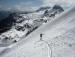 začela peš, potem pa po kakih 15 min. hoje po kopnem - smuči na noge in hajd v breg. Od Gilbertija smo jo urezali proti Sedlu Vršič. Nekaj časa po