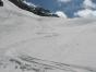daleč. Ker oboje kar dobro poznam, sem bil hitro v konti pod sedlom Brežice, ki je napolnjena z ogromno plazovino. Zanimale so me razmere na vzhodni