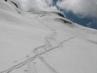 lahko sem nadaljeval gor proti Konjskim policam med Lopo in Grdim Vršičem. Pobočja so bila lepo zasnežena in nedolžna, le sneg je bil bolj mehak. Pa