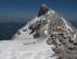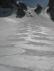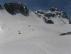 vidim sedlo.Sneg dobro drži,ko pa strmina naraste(nekje do 50°),gredo smuči na ruzak.Pod vrhom se mi precej predira,res je malce skorjasto.S sedelca