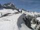 vzpon na Konjske police in najvišji vršič na sedlu med Lopo in Hudim vršičem. Že pozno popoldne odvriskava po samo kakšen cm odjuženem snegu do poti.