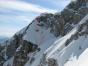 Malo sem pogledal razmere glede snega na mangrtskem sedlu (4.junij), pa sem skočil še na vrh. Sprva sem imel namen po centralni grapi pod zimsko, pa sta ravno takrat dol prileteli dve baloti in sem šel gor raje po osrednjem delu, nato pa zavil v levo od "zimske", po stopinjah prehodnikov. Hvala. Po prihodu na greben vzhodno vrha, sem se sprehodil še do križa, odkopal pokrov skrinjice in našel razmočeno vpisno knjigo. Po vpisu sem vse lepo zaprl. Sestopil sem po zimski, vendar ne po sledeh predhodnikov ampak nekoliko višje, kjer smer tudi poteka. Smuči so me čakale spodaj pri prvih jeklenicah in ob zadetku pravih prehodov sem zelo dobro "prismučal" do zadnjega tunela. Ne bi škodilo kake pol metra snega, sicer pa so razmere na Mangrtu še vedno povsem zimske. Nekdo je pred dnevi pisal, da je smučal po "slovenski" no jaz tam nisem opazil nobenih sledi.