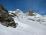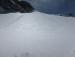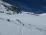 vrhu. Orientacija v lepem vremenu nezahtevna, razdalje velike. Smuka navzdol čudovita, bolj sva šla proti dolini, boljša je bila. Na vrhu uležan