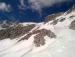 namazati smuči ampak... Sicer sem od Gilbertija nadaljeval po desni varianti, ki je še krasno zasnežena. Novi sneg je spihan in se je ponekod