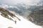 je malo, vendar so pobočja proti Oberlerchner Spitze še zelo lepo zalita. Star sneg je že predelan, nov pa se še močno vdira. Na srečo se slabša