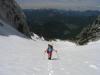 je še vzpon po ledeniku. Kljub temu da nisva bila edina s turno opremo sva se začuda samo midva povzpela čisto do vrha. Za nagrado sva odvriskala po