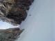 Jalovcu. Od tam pada proti Kotovemu sedlu kratka grapa, bolj strma od Jalovčevega ozebnika. Le malo novega snega na stari podlagi mi je omogočilo
