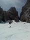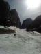 povzpela na ramo nad Kotovim sedlom. Matjažu je bilo vzpona dovolj, jaz pa sem nesel smuči še do začetka zahtevnejšega dela zavarovane poti proti
