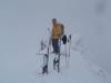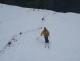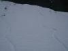 Za pomiritev slabe vesti sem šel danes še enkrat na Dovško - iskat fotoaparat. Mal je bil kriv tudu Jure, ki je zvečer poklical da bi nekam šel. Razmere se niso kaj dosti spremenile. Le vreme je bilo za malenkost manj prijazno, saj je bil vrh zavit v meglo. Sneg je pa ostal enak. Ker seveda ni šlo drugače, kot da odsmučava po grapi, sva uspela ugotviti, da so razmere zelo kložasto skorjaste. Včerajšna varianta po zahodnem robu je bila smučarsko dosti boljša. No pa tudi tako smučanje je prijetna telovadba. Po travnikih in cesti sva se spet prismučala do avta. Aja še zgodba o fotoaparatu. Ko sva se začela vzpenjati sem skoraj obupal - bilo je podobno iskanju šivanke v senu - snegu. Za vsak slučaj sem pred planino zavil po moji špuri nad cesto, kar zaradi strmine ni bilo ravno prijazno. In sem ga zagledal. Ponižno je čakal na špuri, bil je malo zasnežen ampak delal je pa brezhibno, kot da ne bi bil celo noč na nekaj stopinj minusa. Celo baterija je bila še kar polna. Za to imata včerajšni in današnji opis tudi slike. Skratka tura, ki se je več kot splačala. Juhuhu! Jure in Aleš