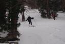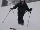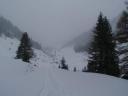 začetku smo malo tipali, vidljivost je postala boljša in kmalu smo vriskali po pršiču vse do planine. Potem pa še smuk po cesti, ki ga je polepšala