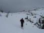 kope. Vmes smo eno bližnjico prehodili. Vrh in greben sta spihana. Smučati smo začeli s sedla na grebenu, kjer je bil zadnji jezik snega. Uživancija