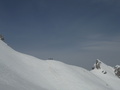 Skoraj klasična tura.le da smo jo prilagodili letom primerno.Vožnja z gondolo do Gilbetija nato pa proti sedlu Bila peč in cilju naproti,v prelepem sončnem vremenu.Sprva je kazalo ,da bo sneg obdržal jutranjo trdoto,a je sonce naredilo svoje.Vozen gnilec je bil kljub temu zadovoljiv.Uživali Marjan ,Cenko ,Jeti in dva novo pečena turaša.