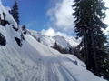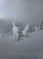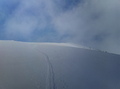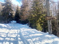 Moja prva😐.Tud približno nisem vedel, kje se začne sneg, zato parkiram kar pri elektrarni in direkt v gozd. Po dobre pol ure hoje se začne sprva skromno, a kaj kmalu kar konkretno kazati belina. Ko se priključim cesti, je snega dovolj. Do vrha nato brez posebnosti, špura po cesti ne ena ampak logično nekaj njih. Od Rožce naprej pa ena in glej presenečenje, niti ne izgleda preveč zvoženo. Dva smučarja se ravno vrneta z vrha, par srednjih let. Ata pove, da je flanka čista poezija in gre še enkrat. Fino, fino, vse bolje. Spodaj trda podlaga, povrhu malo poprha, za občutek čiste beline. Spust res lep, drži lepo gor. V drugo že precej bolj južno vse skupaj, a vseeno čiso dobro. Odločim se, da grem do konca po cesti, kljub temu, da imam avto v podnu, da vsaj vidim do kam pridem. Jah, tam do razcepa (ne vem kje, poznavalci boste že vedeli, na drevesu je več smerokazev). Od tam sem hodil še slabo uro do avta. Nič hudega, lep dan.
