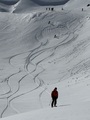 Sneg se začne nad 1200. Severna pobočja kljub sončnemu vremenu ostajajo solidna višje od 1600. Tista, ki jih je dobilo sonce, so se ojužila tudi nad 2000. Tam je bila danes smuka dobra zgodaj popoldne.