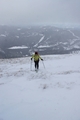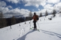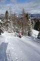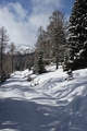 Iskaje plazovno varne terene smo v soboto šli na Wintertalernock s smučišča Flatnitz. Glede na visoko izhodišče in ne zelo visoki vrh tura ponuja skoraj 1400 m vzpona. Gor smo šli drugačno od navadne smeri (vidno na priloženi skici), smučali smo pa po normalki. V področjo označenom z oranžnim ovalom je bilo kar nekaj sesedanja snežne odeje, ki jih je spremljal ’vuf’ in to na ravnem ali minimalnih naklonih. V strmem delu pod robom gozda (30 st) se je celo pojavila razpoka v snežni odeji ob obremnitvi (snega je bila tam cca 1,2 m). Nad gozdno mejo je bilo spihano skoraj do tal. Z vrha do višine 1950 m smo lovili snežne prehode med travami, v gozdu smo imeli globoki, ojužen pršič, na odprtih delih skorjo, ki je v glavnem držala. Vreme je bilo spremenjlivo, od sončnega do sneženja z vetrom.