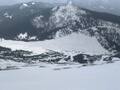 Cesta je skoraj brez snega do parkirišča za Dolgo njivo. Kakšnih 500m pred parkiriščem pa je popolnoma ledena. Sem preizkusil adrenalinski spust z avtom po ledenih kolesnicah. K sreči je nekaj kamenčkov in ročna pomagalo k ustavitvi spusta. Do Dolge njive je bolj led kot sneg in še to v presledkih. Potem pa je snežna odeja zvezna. Ker je sneg držal sem šel peš, šele na pobočju Tolste Košute se je začelo predirati in sem nataknil smuči. Spodnji del neproblematičen, zgoraj pa le snežni jeziki in je potrebno nekaj kolovratenja po travah in snegu. Ker vrh zavije megla in sem spomladansko oblečen 50 m pod vrhom končam vzpon na polički pod balvanom. Na vrh bi bilo verjetno pametno z derezami. Smučanje super, le sem in tja malo več mehkobe. Po snežnih trakovih in grapah zvezno prismučam na Zgornjo Dolgo njivo. Do gozda še vedno fajn. Skozi gozd pa malo rodea po ledu in snegu. Smuči snamem pri potočku nad parkiriščem in še 5 minut peš do avta. Juhuhu! Tako kot včasih popolnoma sam na Košuti.