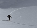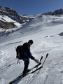 Prečenje izpostavljenega grebena proti vrhu je naporno zaradi ogromne količine snega. Najboljšo smuko (1200 višnicev) je ponudila na S obrnjena strma vesina. Med 3400 in 3200 je smuka zahtevna zaradi skorje. (veter). Pod 2500 ni podlage. (skale)