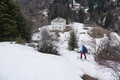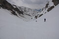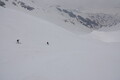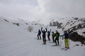 Tik pod meglenim pokrovom, na višini okoli 2.300 metrov, se odločimo obrniti. Do vrha bi imeli vsaj še dve uri vzpona, in raje kot tvegati tavanje po megli, se prepustimo mikavni dolini. V loku proti SV nas pripelje nazaj na planino in nam podari odlično smuko. Celo difuzna svetloba, ki smo jo sprva pričakovali, se je porazgubila.