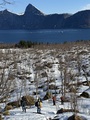 Sea to Summit: Na parkirišču je prostora za tri avtomobile, na vrhu za enega planinca. Snega je ob cesti ravno še dovolj, da je bilo na smuči možno stopiti takoj. Vršni greben je razgleden, zelo razgleden.