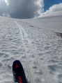 Ena Rodica na sezono mora biti. Po cesti do parkinga za planino. Na dilce grem še v gozdu, ene petnajst minut pred Suho. Kar obetavno se mi zdi. Lansko zimo ob tem času v gozdu ni bilo beline. V žlebu po štapnah z derezami, vendar jih ne bi bilo treba. Mah, za vsak slučaj, da ne bi po nepotrebnem komu delal delo. Kmalu zagledam Rodico in njeno flanko, ki ima že konkretne kopnine. Čudno, lani v gozdu brez, pa flanka v celoti zasnežena, sedaj pa ravno obratno. Z vrha odsmučam gledano navzdol čisto desno po robu, kjer se lahko malo nižje usmerim v levo in nazaj po smeri pristopa. Danes se je še dalo zvezno. Nekaj zavojev res uživaških, sicer pa južne razmere na polno. Itak, žge sonce čist nenormalno. Grem v žleb, abručam ko budala,saj obrniti nisem upal🤪. Kakorkoli "bohinski konc" je vedno lep, za smučat pa naslednje leto upam ujamem boljše razmere. Lep pozdrav, Samo