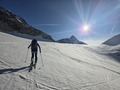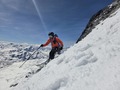 Zjutraj v svežem in sončnem jutru start proti vrhu. Žiga in Flip sta splezala po JZ grapi, z Ladotom pa sva pristopila po po normalki -V pobočju. Pofotkali smo lepe razglede iz vrha, nato priprava na spust. Odsmučali ( prebili ) smo se po že zelo slabo narejenem vršnem grebenu do rame, nato pa spust v vzhodno pobočje. Tukaj je bila smuka odlična vse do vstopa v kuloar, kjer se zadeva zoži na širino smuči- ne gre brez bočnega drsenja. Sledilo je še res uživaško vijuganje do koče , kjer smo nadaljevali z martinčaknjem in hidracijo.